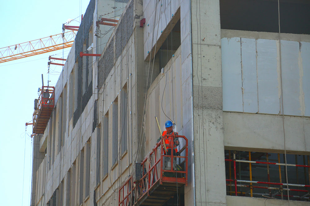 作為墻體的維護(hù)結(jié)構(gòu)工作,內(nèi)外墻二次結(jié)構(gòu)施工是建筑主體結(jié)構(gòu)封頂后的延續(xù)工作。目前,項(xiàng)目內(nèi)、外墻等二次結(jié)構(gòu)已接近尾聲,屋面防水也已完成大半,以上兩項(xiàng)工作預(yù)計4月底可完成。