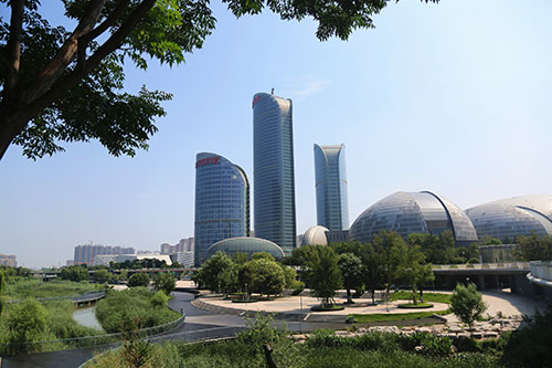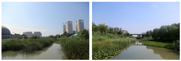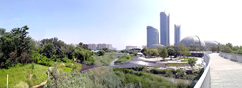 臘山河是濟南西部的一處重要河流,同時也是西客站片區內的一條生態景觀帶,景觀帶在2013年十藝節期間建成,與“一院三館”相映成趣。