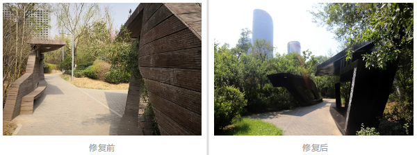 本次工程主要包括高速廣場及三館廣場重竹地板維修、木棧道路修復、局部河道清淤三項主要內容,其余還有修補滲水方磚地面、廣場金屬欄桿刷漆、廣場區域休息座凳整修、廣場區域木質墻面固定刷漆、跨河石橋欄板地面局部飾面板缺失等零星工程,均為在原貌基礎上進行修復。工程完工后,集團下一步將委托專門的維護單位對臘山河進行常規維護,讓臘山河水常清、岸常綠。