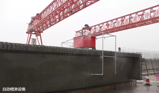 工程采取了多項科技創新技術,全程自動噴淋作業,電磁閥控制自動噴淋設備,可扇形噴霧,達到全天候、全濕潤、無遺漏養生標準,養生效果極為顯著。