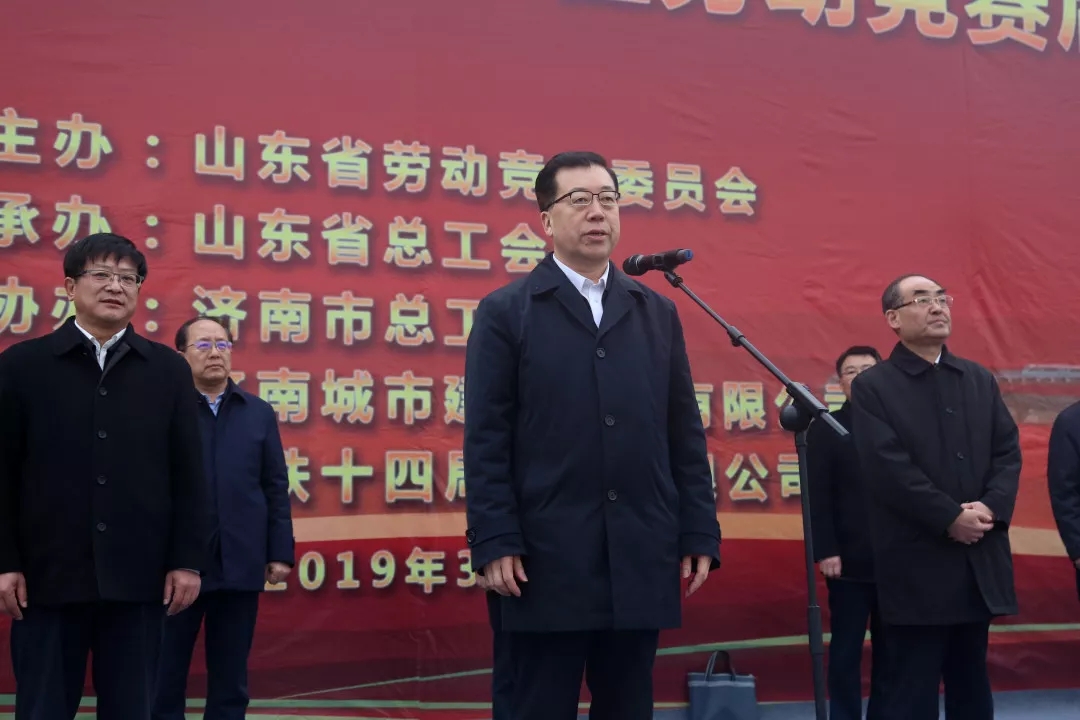 3月29日上午,山東省“當好主力軍、聚力新動能、建功新時代”勞動競賽暨新增省級示范性重點工程勞動競賽啟動儀式在濟南黃河隧道工程現場隆重舉行。省委常委、統戰部部長,省總工會主席,省勞動競賽委員會主任張江汀出席并宣布勞動競賽啟動,省勞動競賽委員會副主任,省總工會黨組書記、常務副主席劉貴堂,濟南市委常委、市總工會主席雷天太出席活動,儀式由省勞動競賽委員會副主任,省人力資源社會保障廳副廳長周春艷主持。
