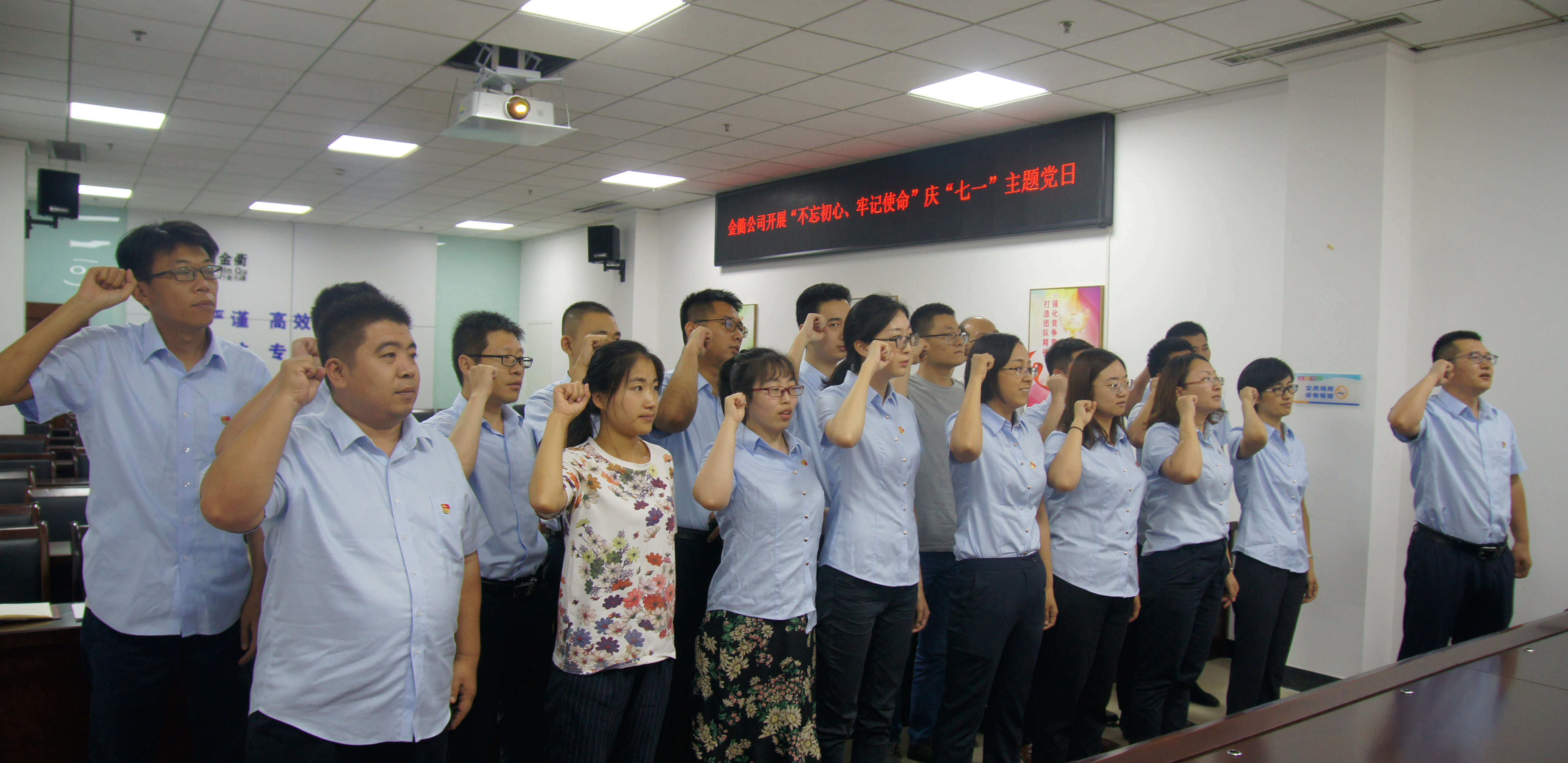 為深入貫徹落實習近平新時代中國特色社會主義思想和黨的十九大精神,激勵廣大黨員干部全面踐行“不忘初心 牢記使命”主題教育,7月1日上午,金衢公司黨支部組織開展了“慶七一”主題系列活動,全體黨員、入黨積極分子、中層以上管理人員共計40余人參加,以實際行動慶祝中國共產黨98周年華誕。