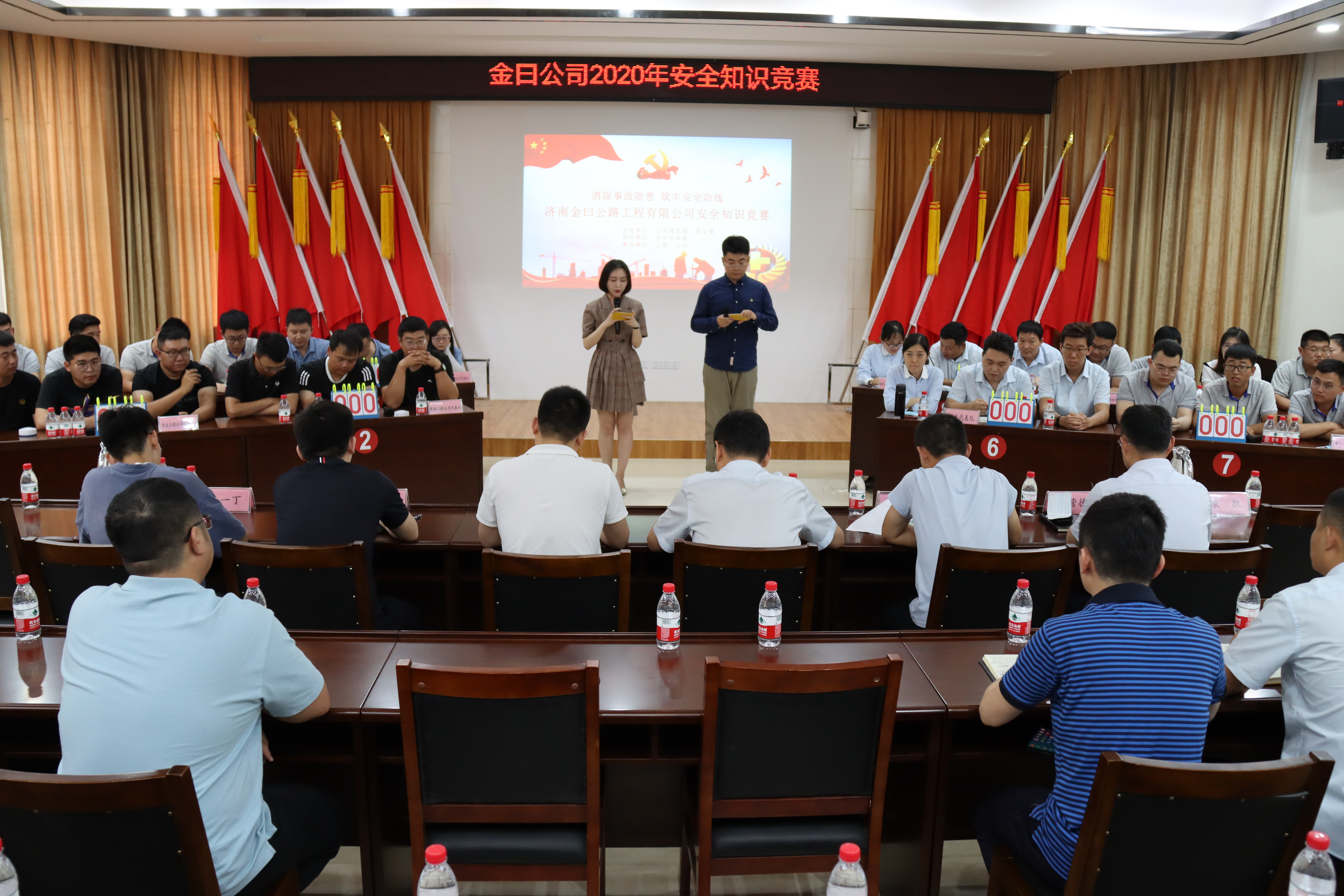 為響應2020年安全月“消除事故隱患,筑牢安全防線”的主題號召,全面貫徹上級黨委對安全生產工作的部署,普及安全生產知識,濟南金曰公路工程有限公司團支部于6月24日舉辦了安全知識競賽。建設集團團委書記張旸、安委辦侯守軍主管、市政資產運營公司團支部書記王一丁、齊魯交通集團濟南公司副總田中亞等出席活動并擔任活動評委。