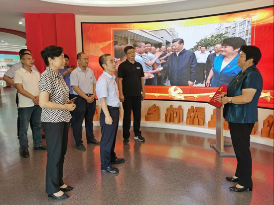 在三澗溪村,工作人員帶領(lǐng)大家重走習(xí)近平總書記的考察足跡。在村委會(huì)黨群服務(wù)中心,深入了解了三澗溪村的成長(zhǎng)史、黨組織的發(fā)展歷程、黨組織建設(shè)經(jīng)驗(yàn)和先進(jìn)做法,以及“四鄰聯(lián)動(dòng)”等為民服務(wù)體系。在鄉(xiāng)村振興主題展館,工作人員為大家講解了習(xí)近平總書記親臨三澗溪村視察指導(dǎo)的有關(guān)情形,并結(jié)合實(shí)物、圖片、視頻、展板等載體講述了三澗溪黨委不忘初心,牢記使命,擔(dān)當(dāng)作為,團(tuán)結(jié)帶領(lǐng)村民脫貧致富的奮斗歷程。期間,工作組與三澗溪村黨委書記高淑貞就黨建引領(lǐng)、鄉(xiāng)村振興等方面進(jìn)行了暢談交流,參觀結(jié)束,全體人員在黨旗前重溫了入黨誓詞。