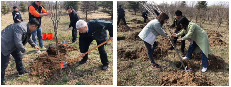 簽約儀式結束后,全體黨員共同前往植樹地點開展植樹活動。在這個春回大地、欣欣向榮的日子里,大家分工明確、齊心協力,按照“挖坑、播種、填土、澆水”的程序,將一棵棵充滿生機與希望的樹苗植入充滿活力的土壤,同時也種下了我們的希望之樹。結對雙方在一片熱火朝天、其樂融融的氛圍中順利完成了本次植樹活動,為濟西濕地更增添了一份新綠。