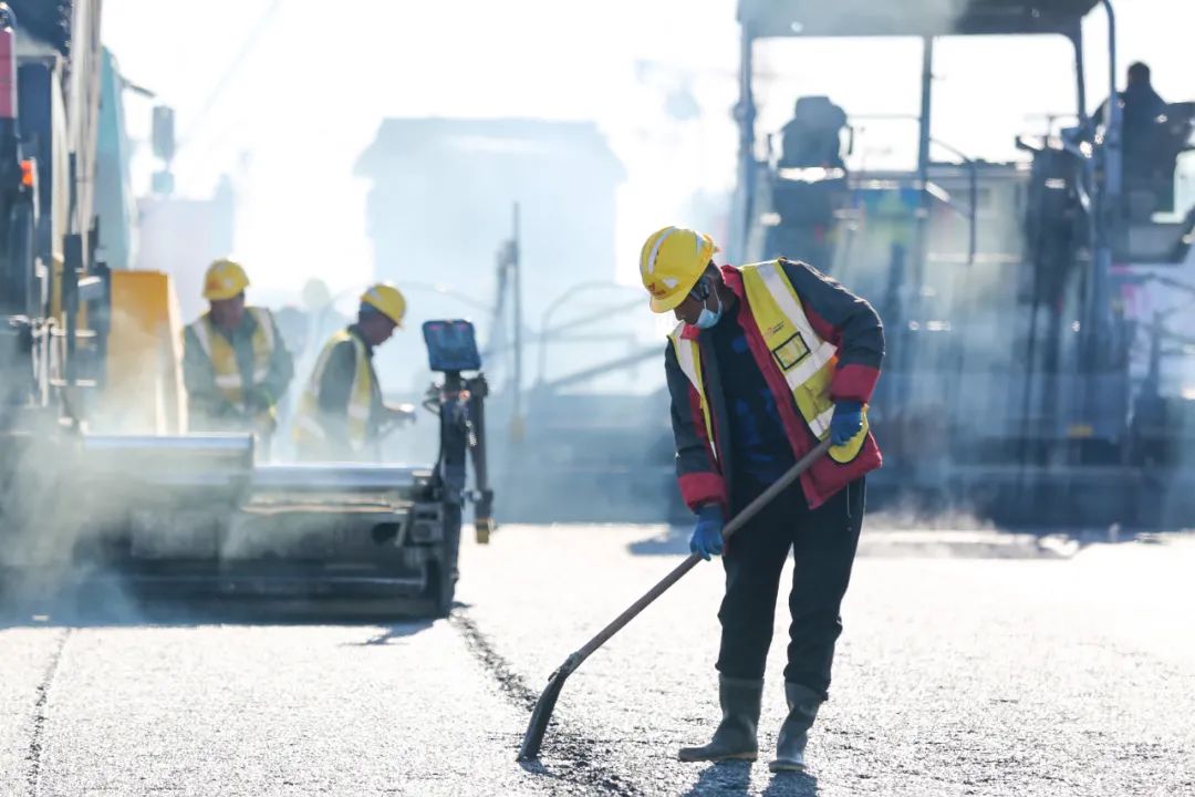 入冬以來,濟南氣溫驟降。黃河大道(一期)工程克服寒潮低溫及雨雪天氣等不利因素,落實冬期施工保障措施,晝夜奮戰,搶抓工期,施工現場熱火朝天。截至11月15日,由建設集團所屬濟南城建集團有限公司負責施工的三標段,慢車道已基本完成水穩基層與瀝青路面施工,現正加緊對路沿石與花磚進行鋪設。
