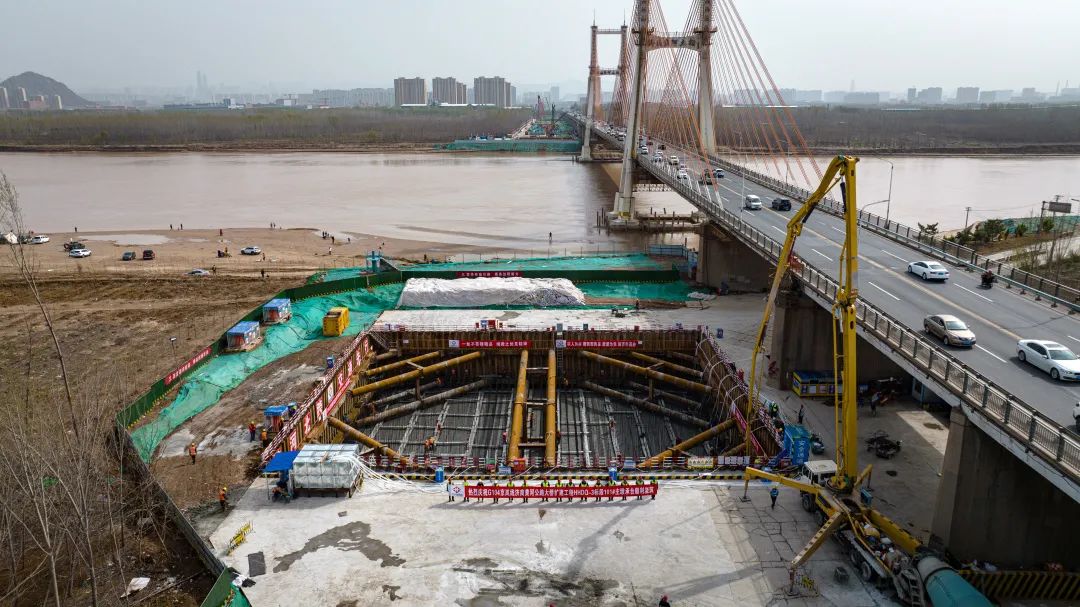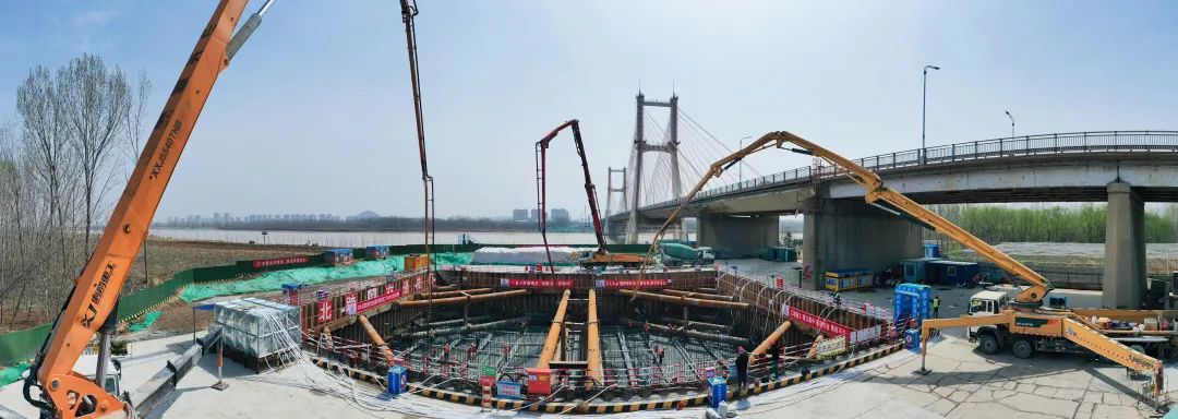 101#主墩承臺(tái)是主橋段體積最大的承臺(tái),項(xiàng)目部科學(xué)組織、合理部署,優(yōu)化各項(xiàng)施工方案,強(qiáng)化技術(shù)創(chuàng)新,率先完成首座主墩承臺(tái)一步混凝土澆筑,有力促進(jìn)了黃河大橋整體工作平穩(wěn)推進(jìn)。