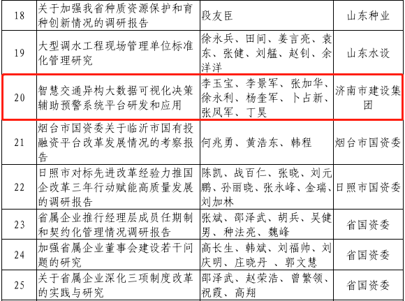 近日,山東省國資委發布了《山東省國資委關于全省國資國企系統2021年度優秀研究成果評選結果的通報》(魯國資法規字〔2022〕11號)文件,濟南城市建設集團總工辦牽頭,集團所屬山東金宇信息集團有限公司研究的《智慧交通異構大數據可視化決策輔助預警系統平臺研發與應用》成果榮獲“全省國資國企系統2021年度優秀研究成果”一等獎。