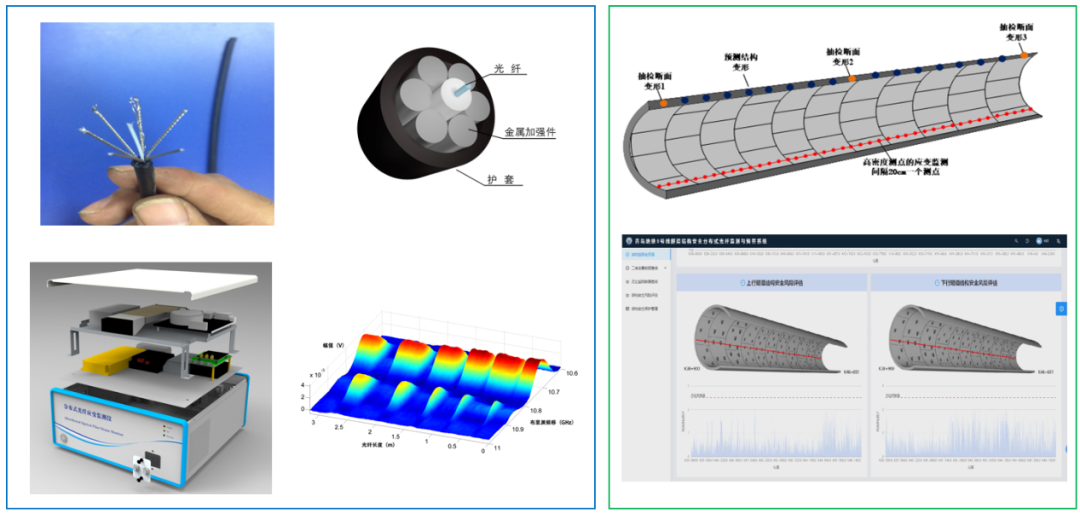 該地鐵隧道結構運營安全監測與預警系統的傳感系統以基于布里淵散射的全分布式布里淵光纖監測技術為核心,通過建立超大規模、高空間分辨率的光纖傳感網絡,實現對隧道結構運營安全及突發事件(如隧道火災)的智能監測與快速預警。