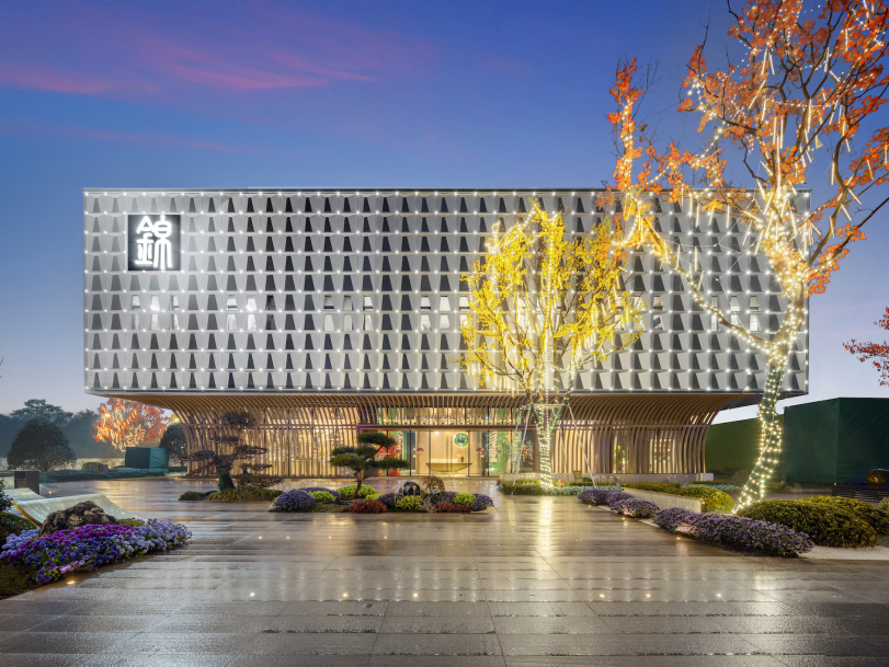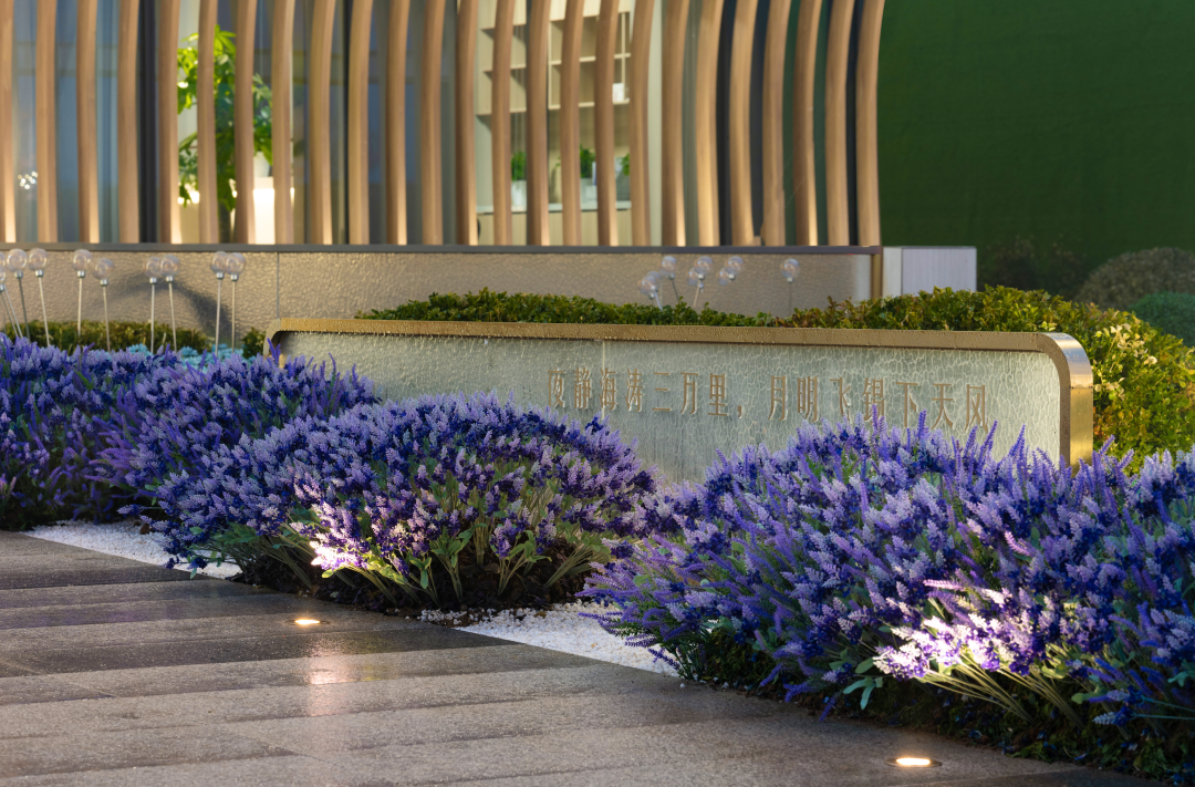 天風錦都項目位于濟南市槐蔭區(qū),遠觀風云平靜,近看風帆揚起,潺潺流水與汩汩噴泉的水景,加之抽象風帆,隔離嘈雜的城市道路與車流,形成廣場藝術(shù)空間。鄰邊水景環(huán)抱,遠處螢火點點,映襯建筑,大面積白色折線藝術(shù)的景墻,形成半圍合室外洽談區(qū),藝術(shù)廣場白天是中小型營銷活動的舉辦地、唯美浪漫的室外洽談區(qū),功能復合,靈活多變。