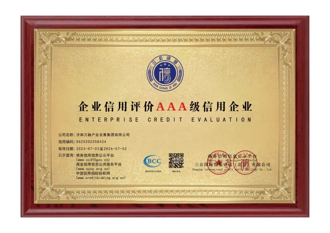 “信用等級認(rèn)證”是由行業(yè)專家對公司近三年整體運(yùn)營管理情況進(jìn)行全面嚴(yán)苛的綜合評定,AAA級是企業(yè)的最高信用評價級別。該信用評價結(jié)果同步在商務(wù)信用信息公示平臺、商業(yè)信用信息公共服務(wù)平臺、中國信用招標(biāo)投標(biāo)網(wǎng)平臺等信用平臺進(jìn)行公示。