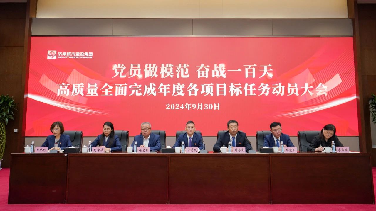 為激發廣大黨員的干事創業熱情,發揮黨員的先鋒模范作用,帶動集團上下凝心聚力、克難攻堅,確保圓滿完成全年目標任務,加快推進集團高質量轉型發展,9月30日,濟南城市建設集團召開“黨員做模范 奮戰一百天 高質量 全面完成年度各項目標任務動員大會”,集團黨委書記、董事長許為民出席會議并講話,集團黨委副書記鐘善良主持會議,部分集團領導班子成員,各部室及一級子公司(項目部)負責人參加會議。