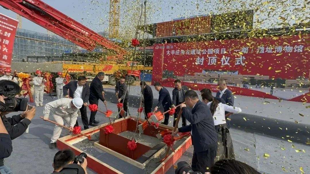 10月29日,由建設(shè)集團(tuán)所屬山東易方達(dá)建設(shè)管理集團(tuán)有限公司負(fù)責(zé)監(jiān)理的大辛莊考古遺址公園(一期)遺址博物館項(xiàng)目主體結(jié)構(gòu)封頂。