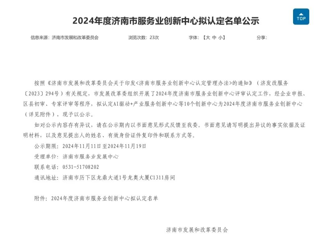 近日,濟南市發(fā)展和改革委員會公示《2024年度濟南市服務(wù)業(yè)創(chuàng)新中心擬認定名單》,建設(shè)集團所屬山東金衢設(shè)計咨詢集團有限公司技術(shù)創(chuàng)新中心獲批2024年度濟南市服務(wù)業(yè)創(chuàng)新中心。