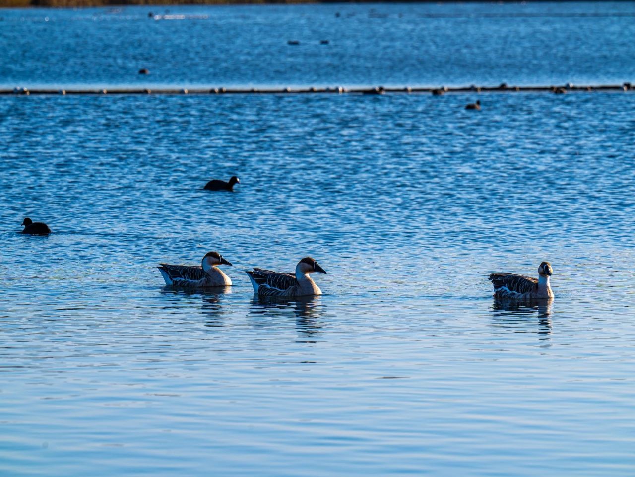 羽翼輕展映寒暉,群鳥嬉戲逐水歸。秋末冬初,上百只國家二級保護動物白骨頂雞如約來到濟南華山景區棲息,赴冬日的約定。